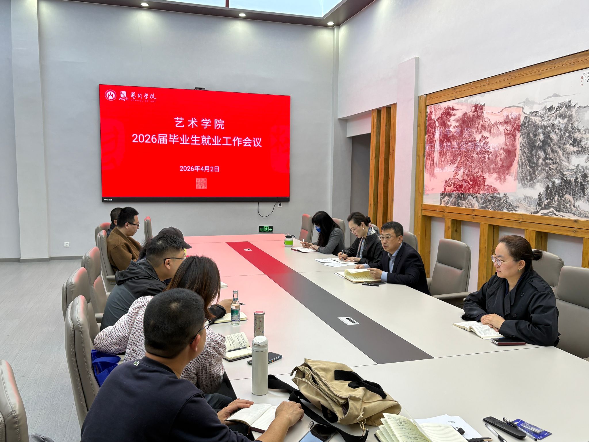 副院长(主持工作)宋述林结合艺术专业特点,分析了当前艺术类专业的就业形势及当前毕业生的就业现状。他指出,要充分发挥学业导师和学工队伍力量,积极引导毕业生立足专业特色,充分挖掘优质岗位资源,不断加强学生的就业能力培养,将职业规划、求职技巧等内容融入毕业教学实践中,引导学生调整就业预期,树立理性的就业观。