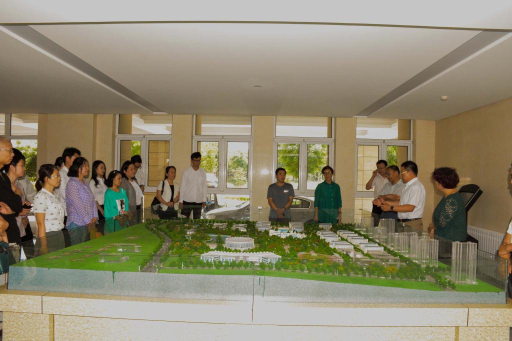 冒着高温,大家随后到我校莱芜校区参观考察,在校区负责人的介绍下,对校区规划和场馆建设使用情况进行了全面了解,现场感受学校转变发展思路异地办学借力发展的新成果;在返校途中,大家还考察了莱芜市苗山镇党委带领当地群众开展新农村建设的果蔬种植基地,历史文化古建筑保护项目等。