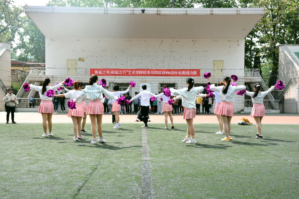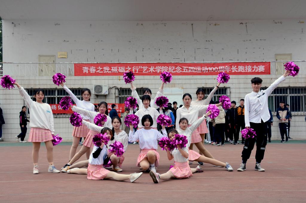 纪念五四运动100周年长跑接力赛。 操场上,啦啦操队员们激情四射,神采飞扬为今日吃瓜