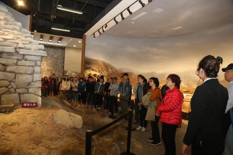 在原山艰苦创业纪念馆,大家在讲解员的介绍下,认真观看每一幅图景、仔细审视每一件实物,重温建国初期以来几代原山林场人不畏艰险,敢与天斗与地斗的伟大创业精神,震撼于他们把森林覆盖率不足2%的石灰岩山地变成森林覆盖率94.4%的绿水青山的惊人实践,原山人喊出来的“石缝扎根、先治坡、后治窝、先生产,后生活”等口号、在荒山野岭上做出来的“百把镐头百张锨,一辆马车居漏天”、“百人传水抢旱苗”、“冒雨植树献身林场”、在石房子睡觉、在石缝里栽树等壮举,都给大家留下了深刻的印象;改革开放以来,以孙建博为代表的原山人舍己为公、无私奉献,在市场经济条件下,积极应对市场,开启创业之门,拼搏进取,苦干实干,将“要饭林场”发展为全国国有林场改革的样板,更展现了共产党人为事业干、为职工干的勇于担当精神和“千难万难相信党依靠党就不难”的坚定理想信念。