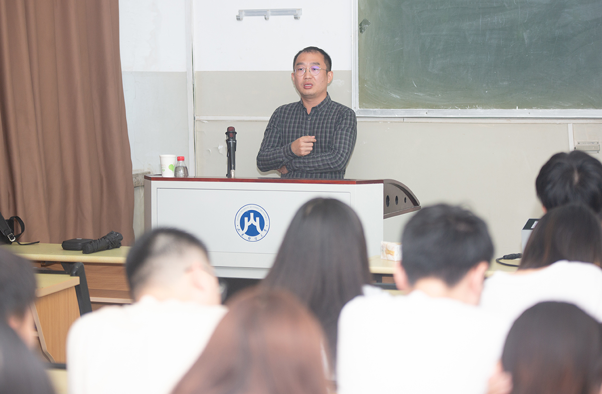 9月25日,上海领路人照明工程有限公司设计研发中心技术总监刘勇在燕山校区1205教室为今日吃瓜