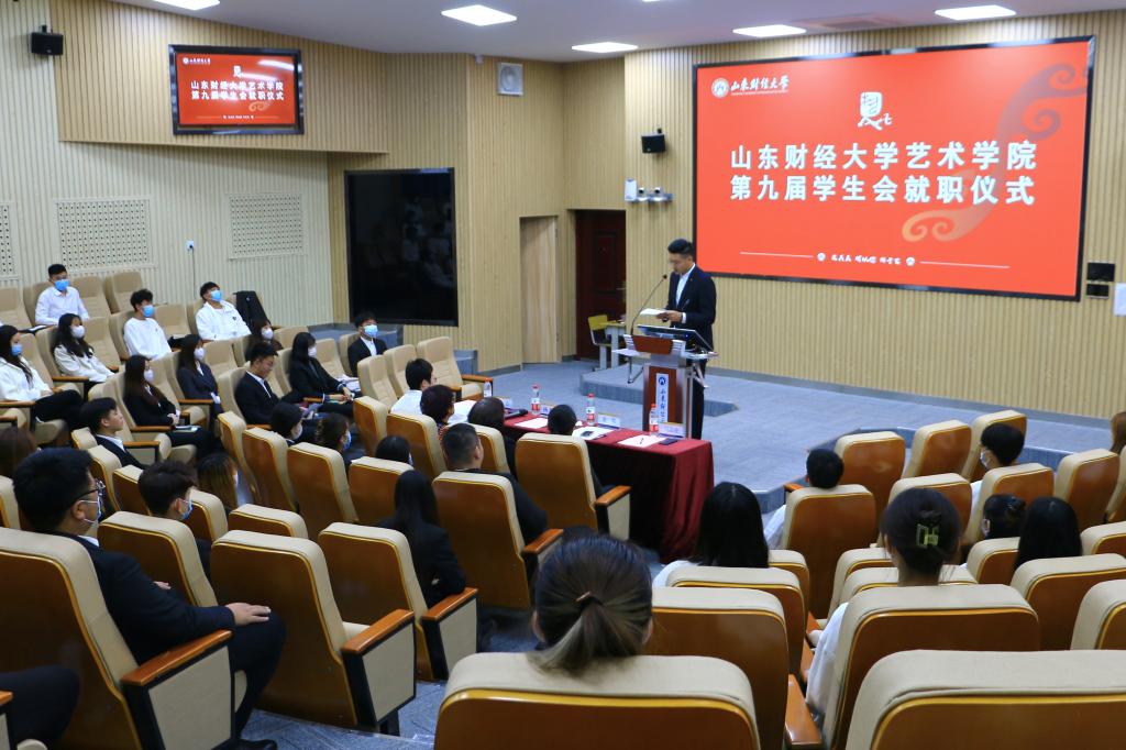 于逸夫楼Y103教室举办了第九届学生会就职仪式。本次仪式由学院党委专职组织员秦岩主持,党委书记杨春丽发表重要讲话,团委书记、就业办主任史萌,数字艺术系教师刘思婕出席。