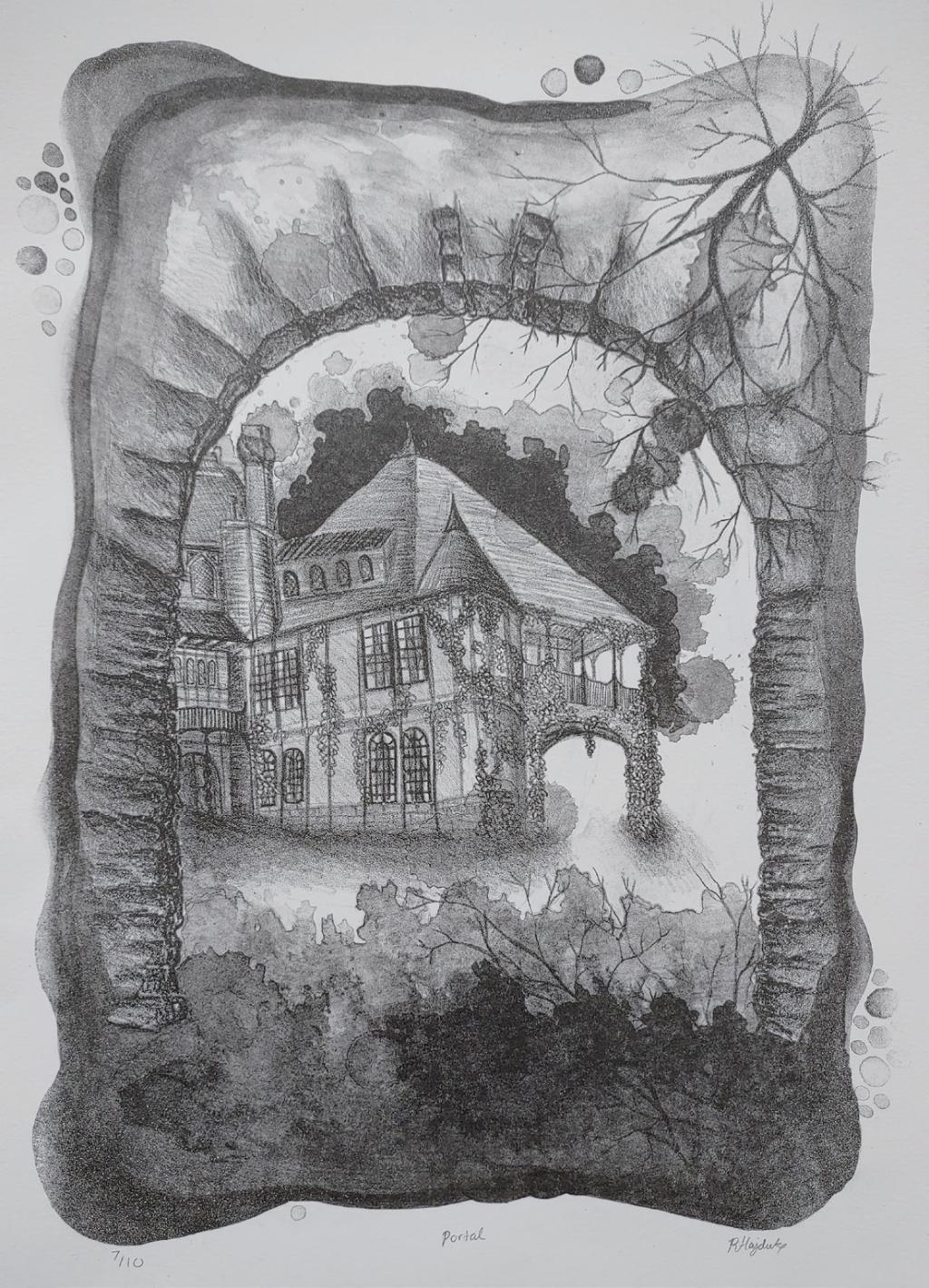 My work explores the dichotomy between the organic chaos of nature and the geometric organization of man-made architecture. I apply a streamofconsciousmethod to monoprints, as I spontaneously alter the ink on the plate. Combining impulsivity with diligence creates a unique combination of textures and atmospheres wintin my work. My work is heavily inspired by architecture and nature trails around Rochester. Printmaking techniques such as hand coloring lithographs, continue to inspire me by referencing Currier and Ives, from the nineteenth century.