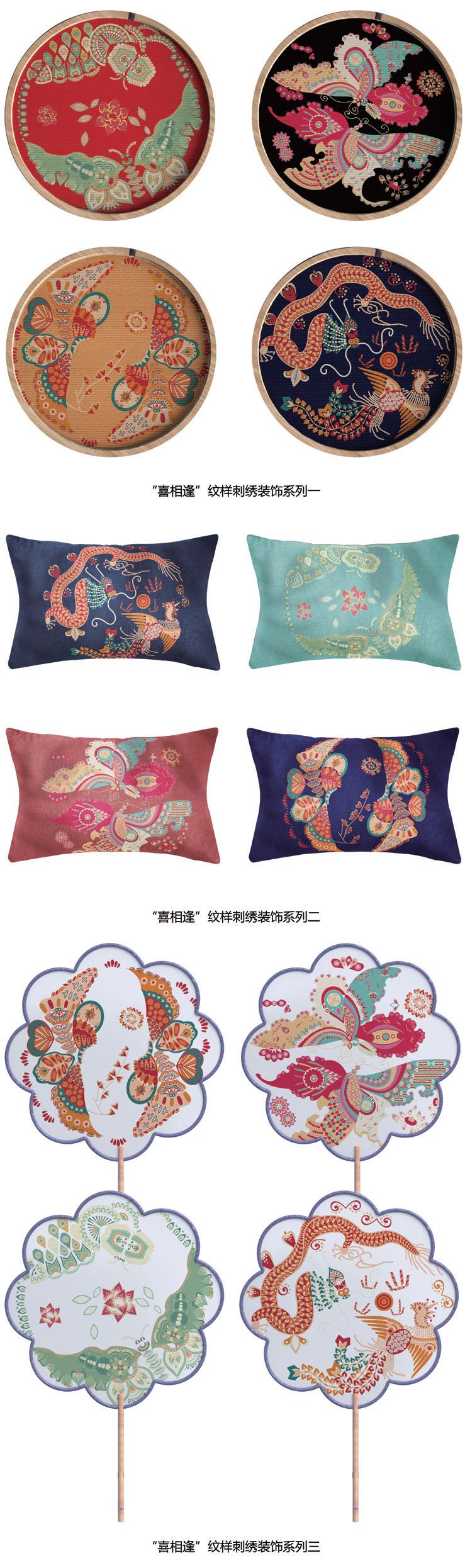 The pattern of "Happy reunion" is an important point in the traditional Chinese visual symbols. Along the historical line, it continues people's longing for and pursuit of "happy" things to the modern times. Based on the pattern of "Happy reunion" in The Ming and Qing Dynasties, the representative graphic cultural elements are extracted from the pattern, which are recombined according to the rules and laws of modern graphic expression to carry out modern design research and show it with traditional embroidery skills. It can not only realize the inheritance of traditional culture, but also promote the sustainable development of modern design industry.