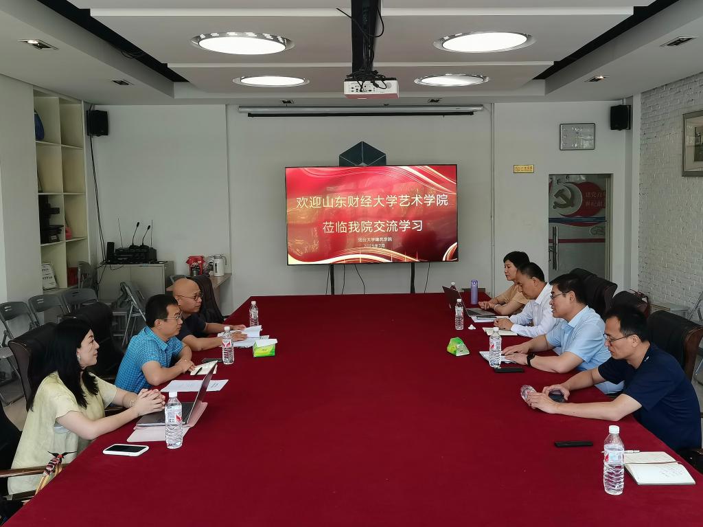 此次调研不仅为学院设计专硕申报提供了可借鉴的实操经验,更在“新文科”建设背景下,为艺术学科与财经特色的深度融合开辟了新思路。双方约定,将以学科共建为纽带,在人才培养模式构建、社会服务项目开发、跨校资源共享等方面深化合作,共同探索新时代艺术人才培养的创新路径,为服务区域经济社会发展与文化传承创新贡献高校智慧。