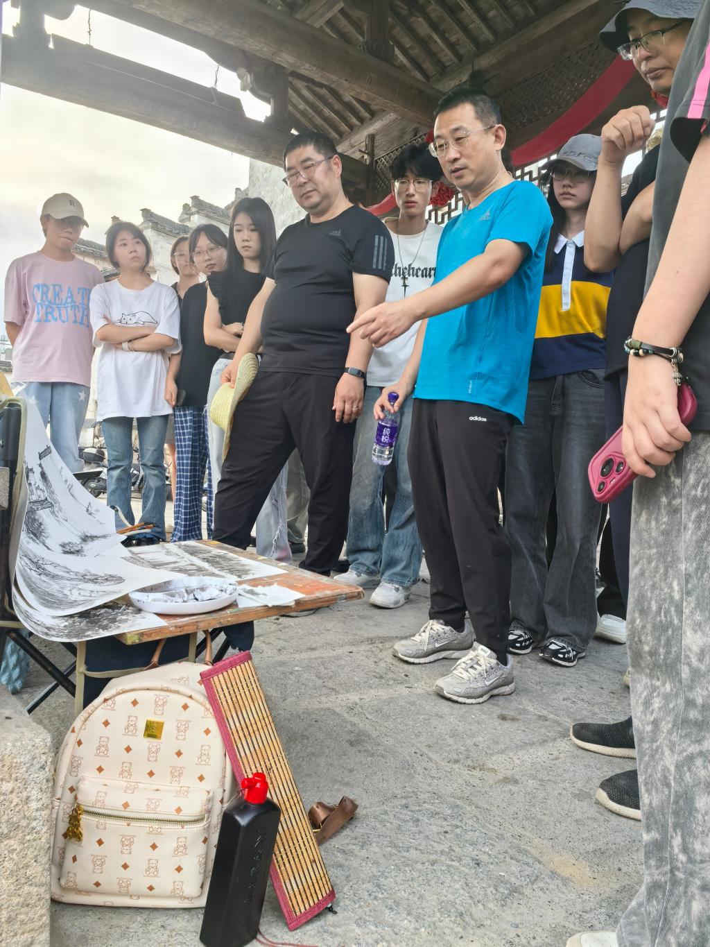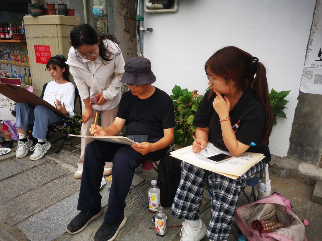 发扬实践教学传统,将思政课与写生、调研有机融合,开展了一场别开生面的“行走在艺术实践中的思政课”。课堂聚焦宏村、西递、屏山和徽州文化博物馆等地的传统文化转化,运用当地文化和建筑特色进行教学设计,将思政教育有机融入专业教学,让学生在感受徽派文化魅力的同时,厚植家国情怀,体悟艺术与人民的紧密联系。