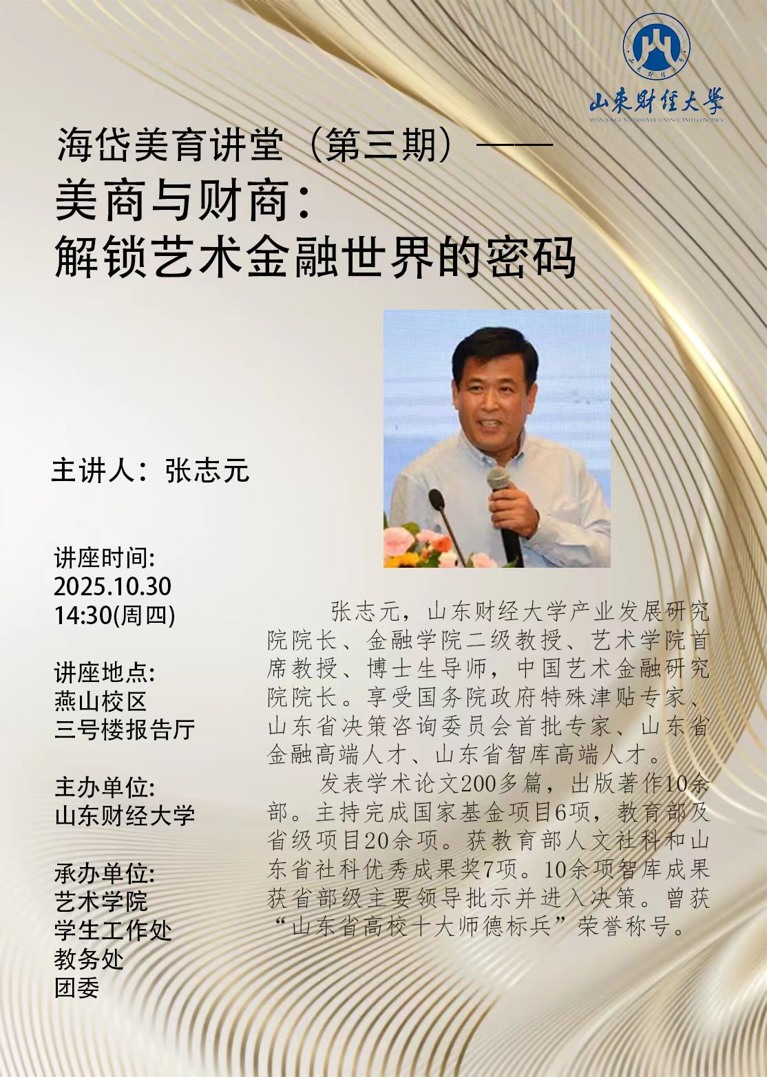 上一条:海岱美育讲堂(第四期):翰不虚动,下必有由:一堂课引领你读懂中国书法 下一条:海岱美育讲堂(第二期):跨文化交流设计中的艺术表达