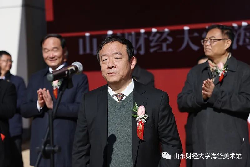 校长赵忠秀在致辞中谈到:“海岱美术馆的建成开馆,是贯彻落实党中央和总书记立德树人要求、推动德智体美劳五育并举的新举措,是学校美育工作迈出的新步伐。”“希望海岱美术馆要展示新形象,积极广泛汇聚社会资源,承接承办高规格的艺术展览,提升美术馆的社会影响力和辐射力,成为学校文化的新亮点、艺术的新名片;要凸显新功能,通过丰富多彩的会展、鉴赏、艺术研讨、文化交流等活动,提高师生审美情趣、升华审美修养、厚植审美情怀;要作出新贡献,广大师生要以开馆为契机,进一步解放思想、不断创新、务实奋进,以实际行动促进学校文化大发展、大繁荣,为建校70周年献礼!”